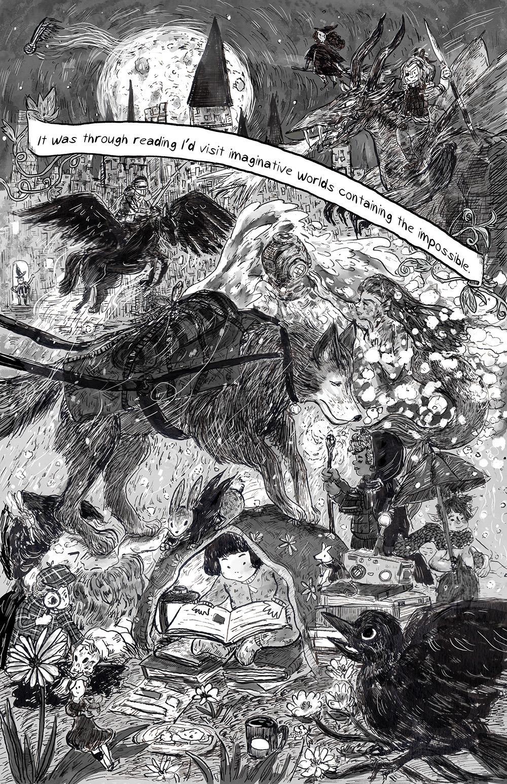 Making up stories about the nearby woods. Creating fanfiction with a friend to stay close during a move. Envisioning yourself as an alien moon princess. Using magic to help realize your identity. Struggling to stay creative on a new medication. Mastering the mystique of pro wrestling. Reinventing yourself as the hero of a game. Picturing your characters doing sick flips out the window of a moving car… With imagination, all things are possible.